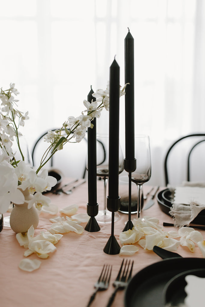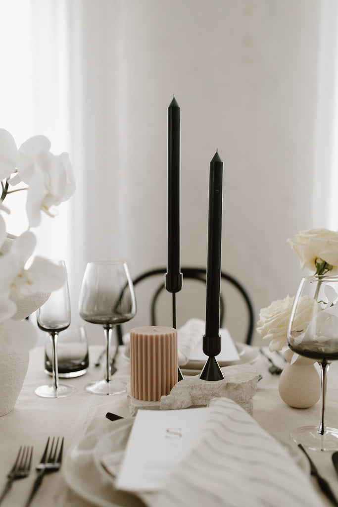 The Halcyon Taper Candle Set in Black combines contemporary design with classic shapes. Designed to stand alone or can be used with our Glass Cylinder Sets.