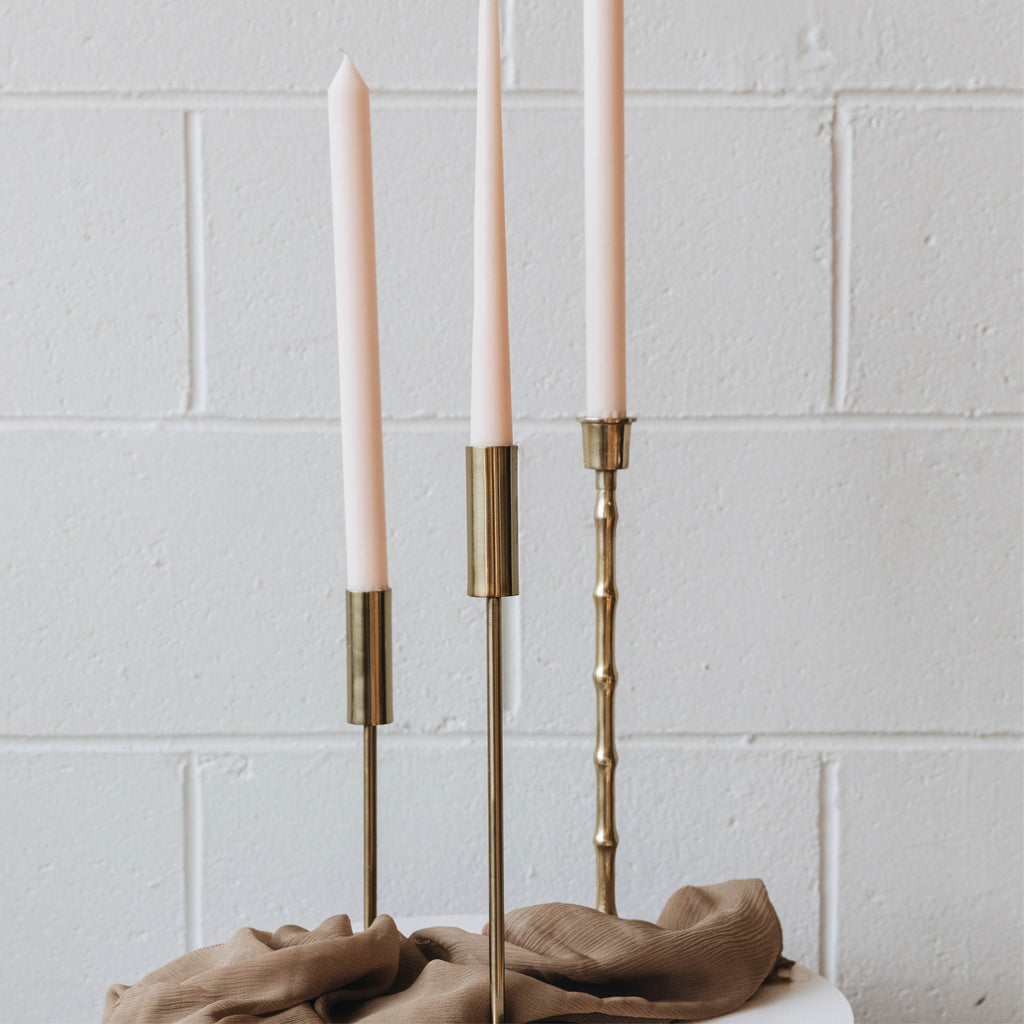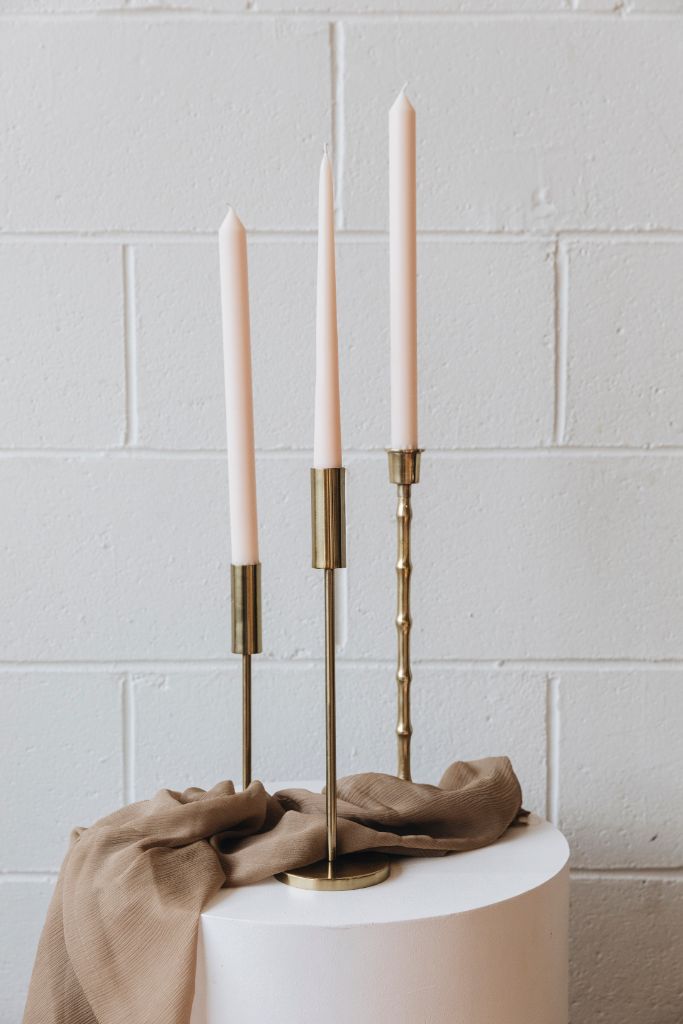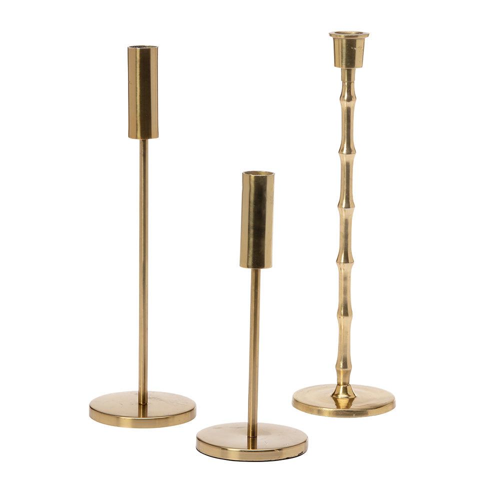 Set of 3, Gold Candlestick Holders, ideal for Dinner and Taper Candles.