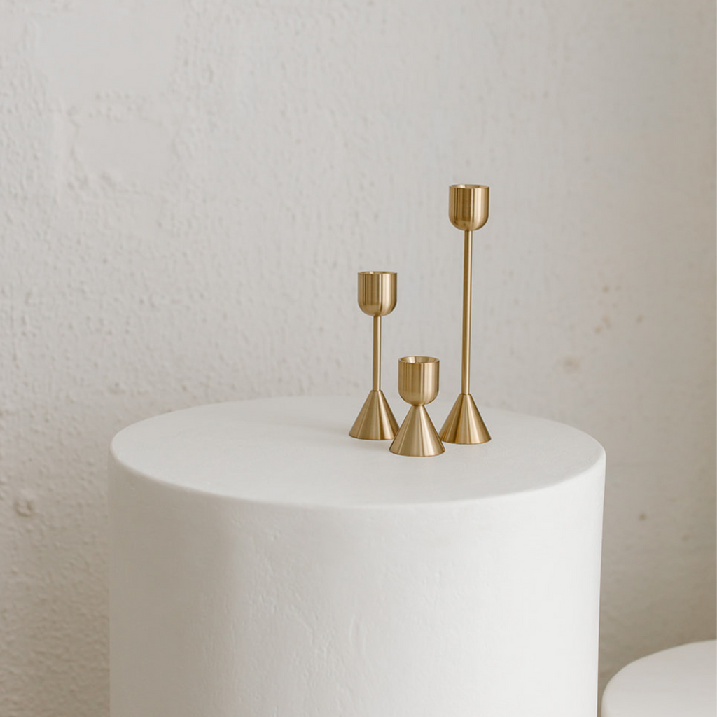 The Halcyon Taper Candle Set in Gold combines contemporary design with classic shapes. Designed to stand alone or can be used with our Glass Cylinder Sets.