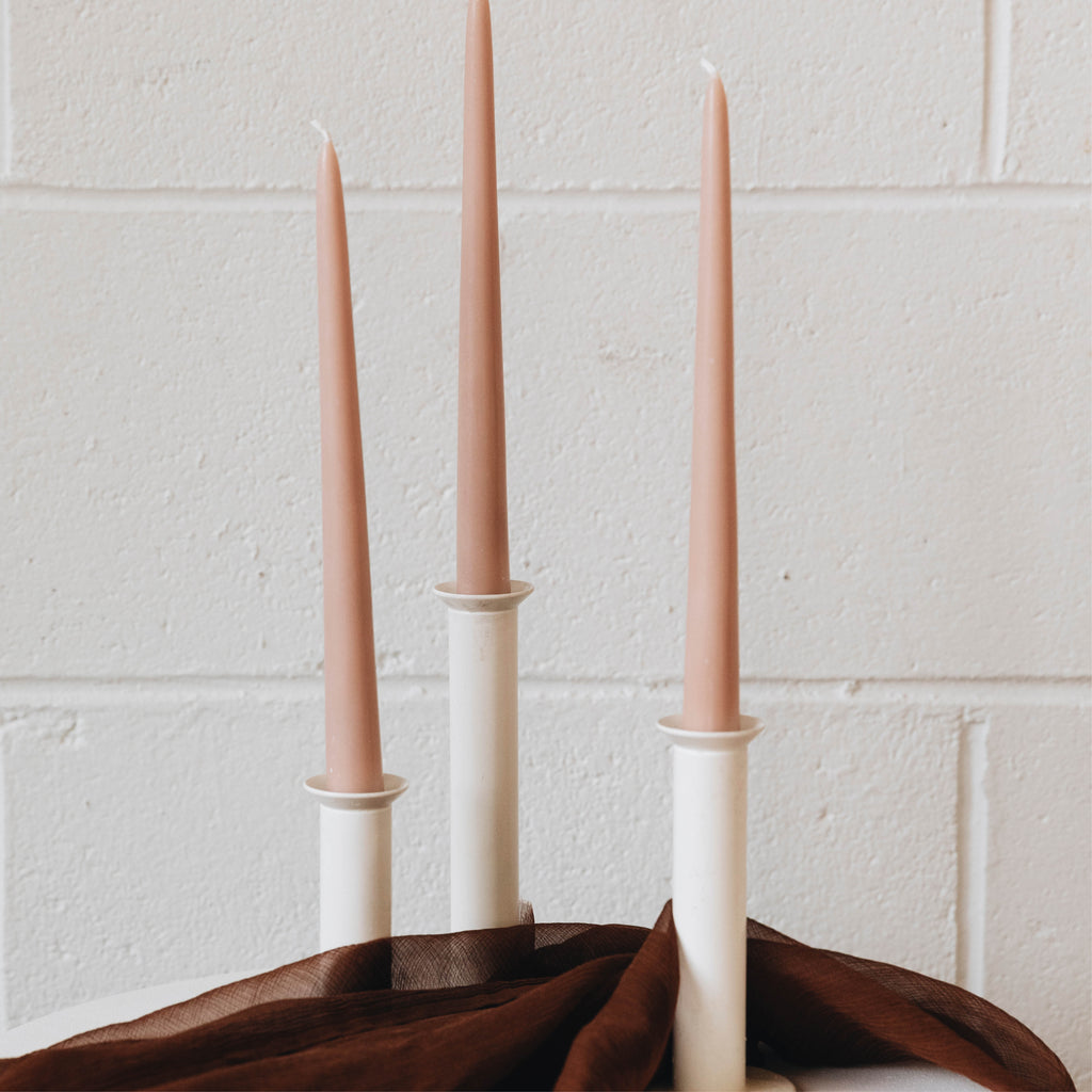 Set of 3, Ivory Candle Stick Holders, ideal for Dinner and Taper Candles.