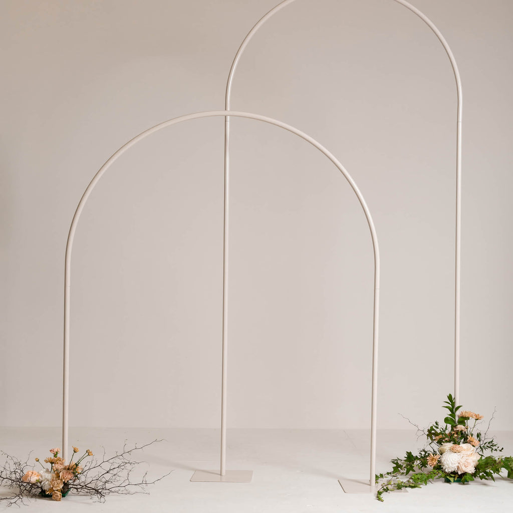 Decorate this Double Arch Arbour set with florals for a stylish statement for your wedding. Also suitable for balloon installations or styled on its own.