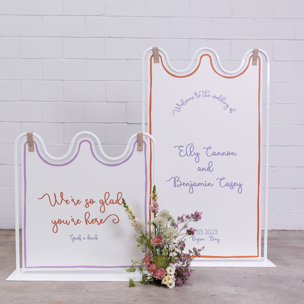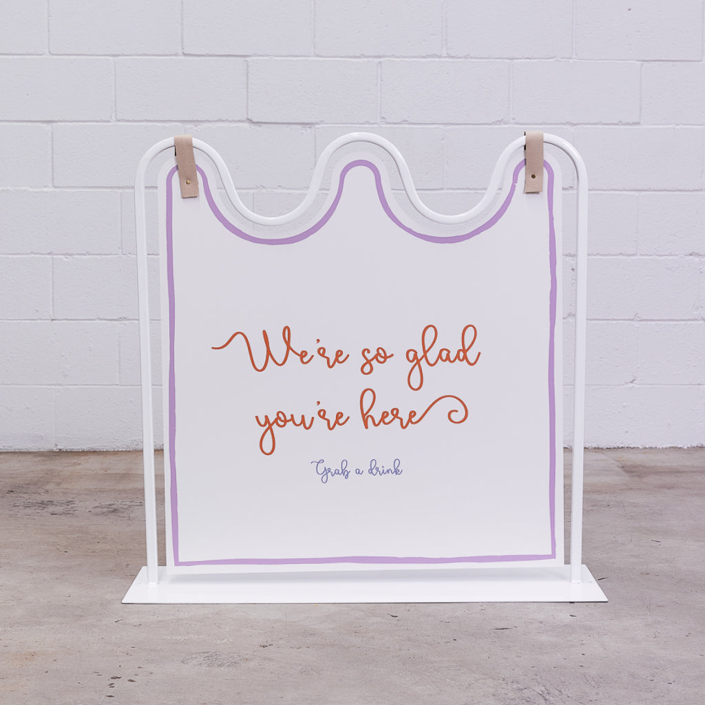 The Sign Stand sure to make a statement. The Shorter version of our two Wiggle Sign Stands, in White. Pair with the Tall Wiggle Sign Stand, or feature this statement piece on it's own.