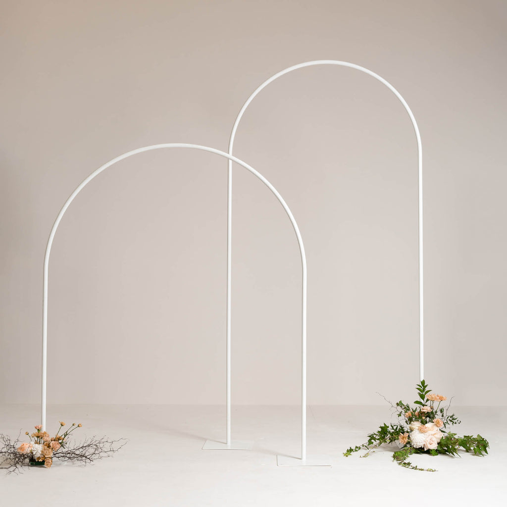 Decorate this Double Arch Arbour set with florals for a stylish statement for your wedding. Also suitable for balloon installations or styled on its own.