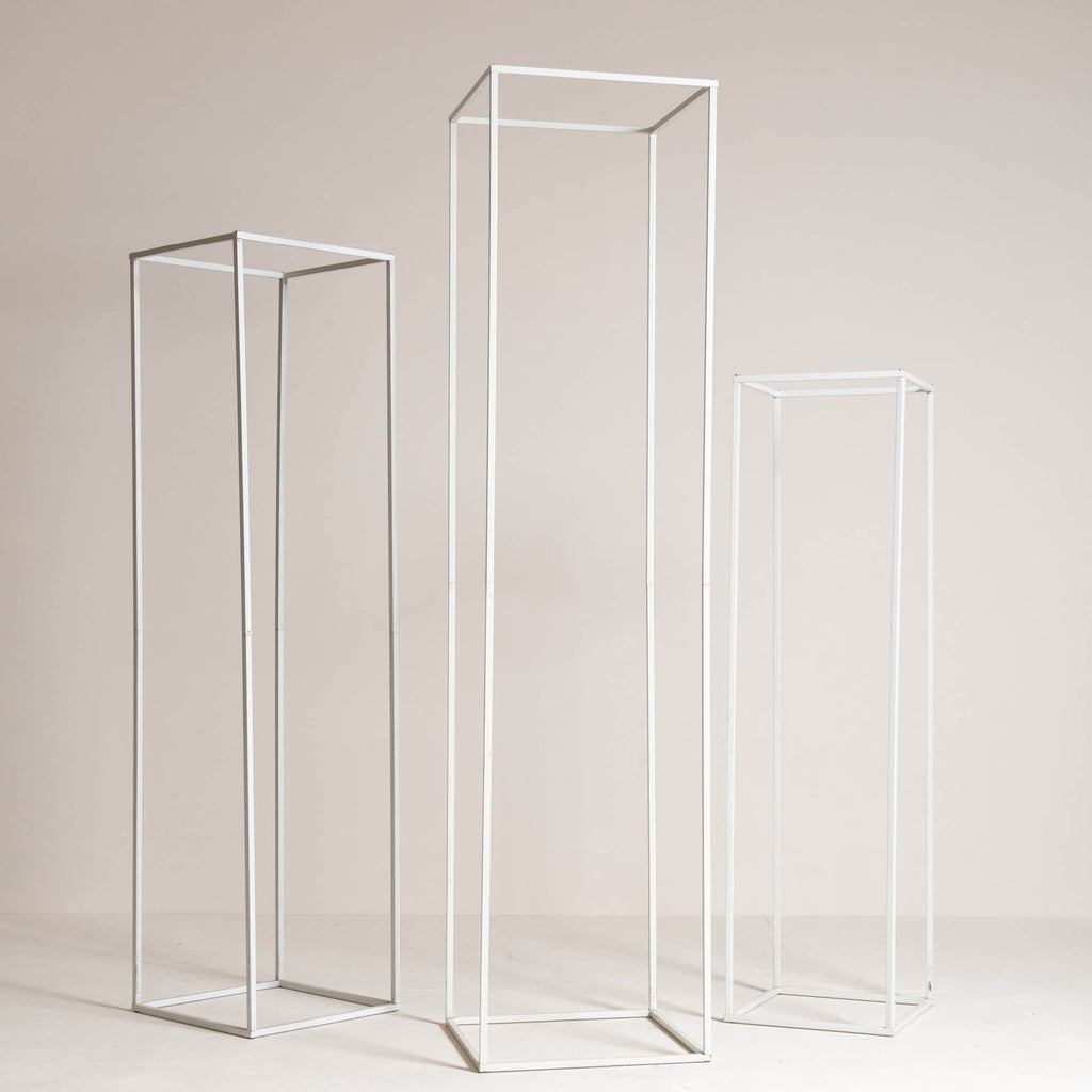 White Frame Plinths in a Set of 3. Floor standing pedestal frame, ideal for a wedding ceremony, to be decorated with florals.