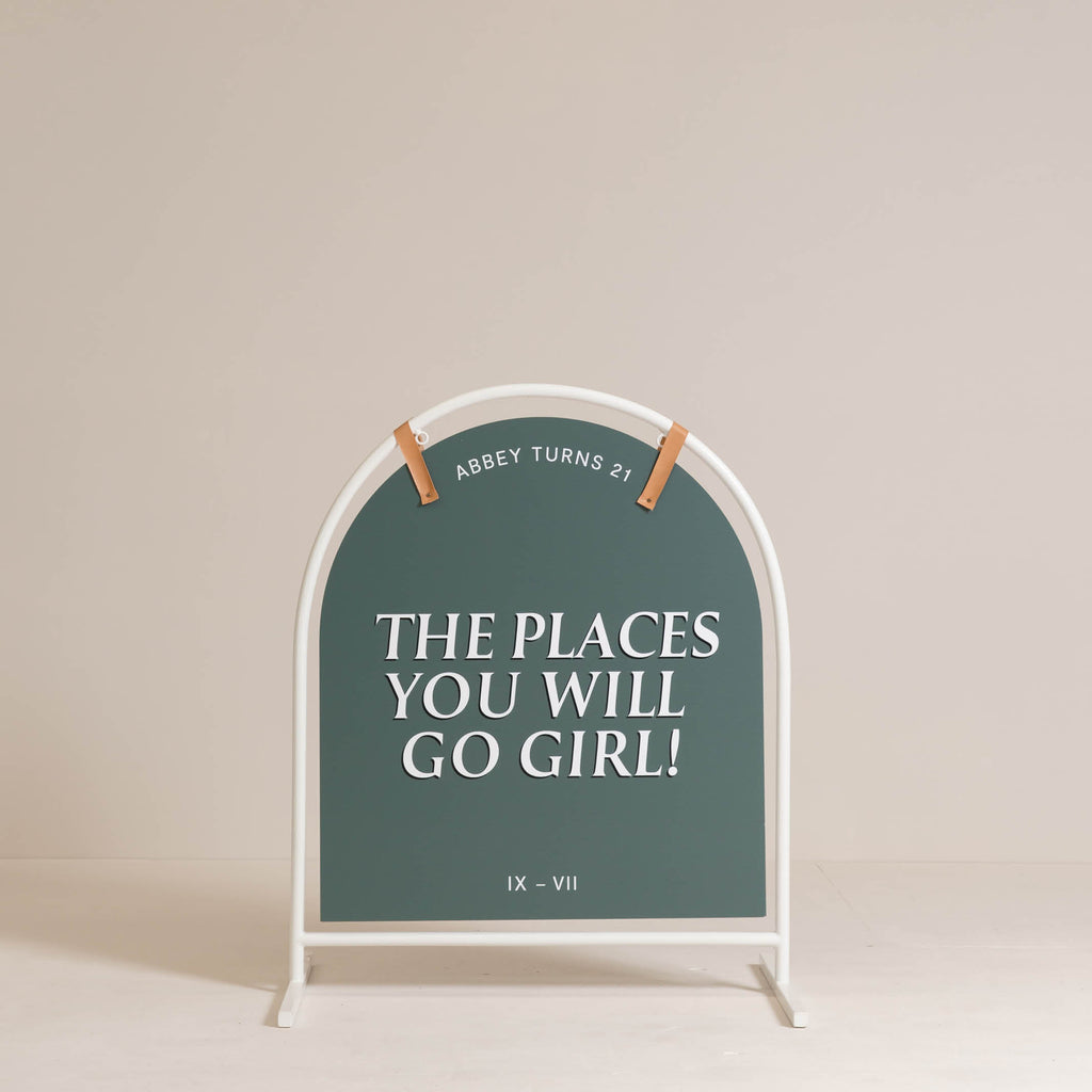 A simple Dome Shaped Arch Sign Stand. To avoid artwork errors being made, please refer to the Dieline below.